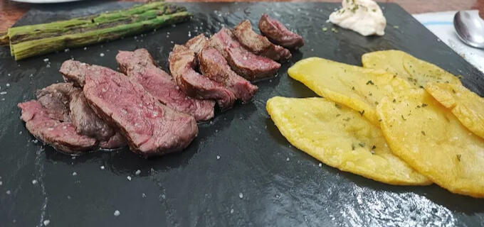 En nuestro restaurante, cada plato es una celebración de sabor y calidad. Nuestra selección de carnes está pensada para los paladares más exigentes: desde la jugosa picaña de vaca hasta la exquisita presa ibérica de bellota, pasando por el tierno solomillo de cerdo, los espectaculares cachopos asturianos y el suculento codillo al horno. Los fines de semana y festivos, no dejes de probar nuestras especialidades como la carrillera ibérica en salsa, el cordero segureño o la costilla de cordero a baja temperatura, auténticas joyas para los amantes de la carne.Si tu preferencia es el marisco y el pescado, nuestra propuesta es igual de tentadora: calamaritos fritos, rosada con alioli, boquerones fritos, adobo andaluz, bacaladillas o la ocasional sepia a la plancha. Para ocasiones especiales, ofrecemos barcas de marisco para compartir, listas por encargo para que la experiencia sea única.No podemos olvidar nuestras clásicas y alpargatas, elaboradas con mimo y combinaciones que van desde el jamón y queso viejo hasta el salmón ahumado con toques de trufa o aguacate. Para los que buscan un plato contundente y creativo, nuestras Alpargatas XXL, como el Especial Zapatero, son toda una experiencia culinaria acompañada de guarnición de patatas alioli, bravas y huevo.Para abrir el apetito, nuestras tapas y entrantes incluyen desde torreznos fritos auténticos de Soria, salmorejo casero y croquetas artesanas, hasta tostas innovadoras y pan Bao rellenos. Las ensaladas y platos de la huerta completan la carta, con combinaciones frescas, nutritivas y sorprendentes, ideales para compartir o disfrutar en solitario.Y para acompañar cada bocado, nuestra selección de vinos y cervezas ha sido cuidadosamente elegida: Riberas del Duero, Riojas, blancos afrutados y cavas, además de sidras y cervezas de diferentes estilos, para que cada comida sea un verdadero festín para los sentidos.Ven y descubre una carta pensada para saborear, compartir y recordar, donde cada plato es una experiencia que invita a repetir.